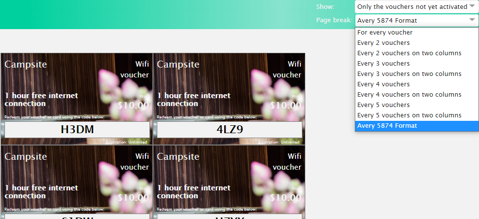 NEW! We added the possibility to choose the “Avery 5874” format when you print card and voucher.