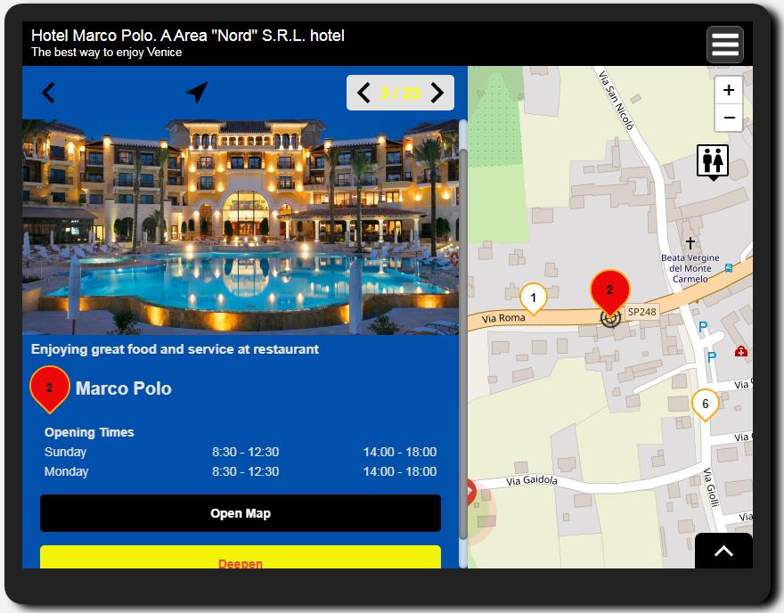 Location-based videos, audio files, images, descriptions allow you to engage content for visitors and inform them about events, daily activities, special offers and promotions based on their location in your venue in the form of an easy-to-use mobile App.